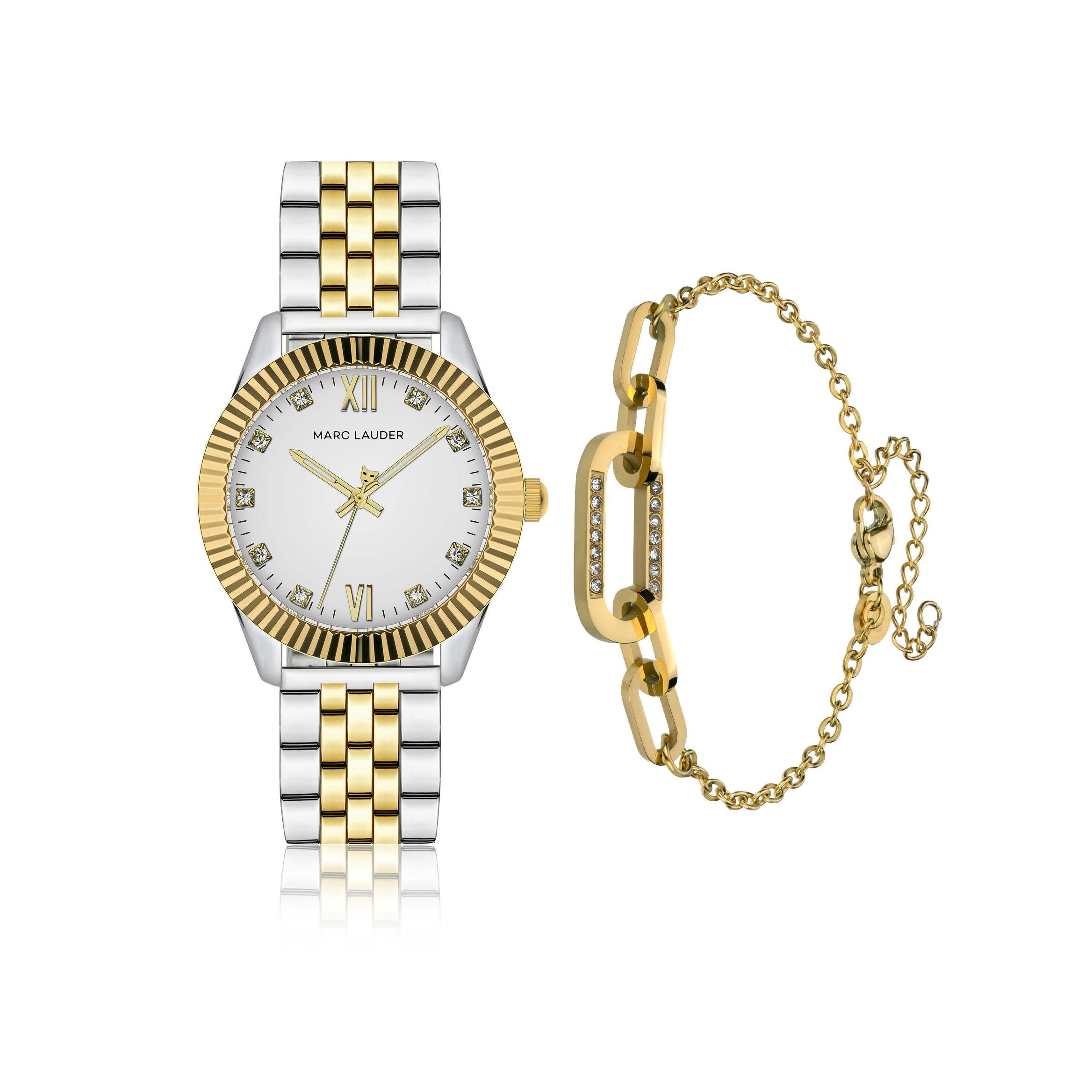 Klasikinis grožis ir šiuolaikinis meistriškumas susijungia į vieną harmoningą visumą su Marc Lauder „Athens“ laikrodžio ir apyrankės rinkiniu – idealiu pasirinkimu tiems, kurie vertina eleganciją kiekvienoje detalėje.
