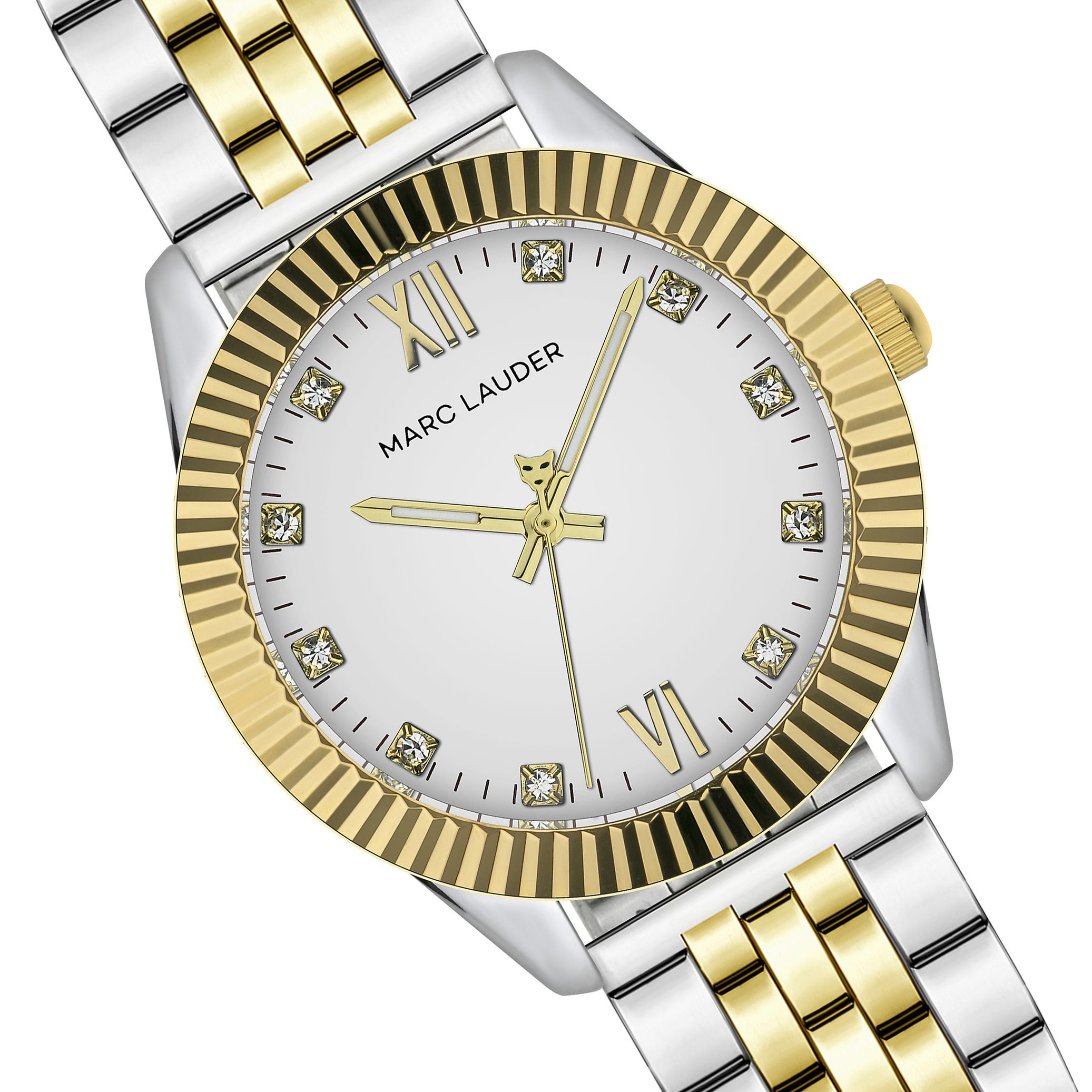 „Athens“ laikrodis išsiskiria švariu baltu ciferblatu, įkomponuotu į subtilų 36 mm korpusą, kuris spinduliuoja rafinuotumu. Ciferblatą puošia romėniški skaitmenys ir 10 žėrinčių cirkonio akučių, suteikiančių prabangos bei išskirtinumo. Auksinis rėmelis dar labiau pabrėžia laikrodžio eleganciją.